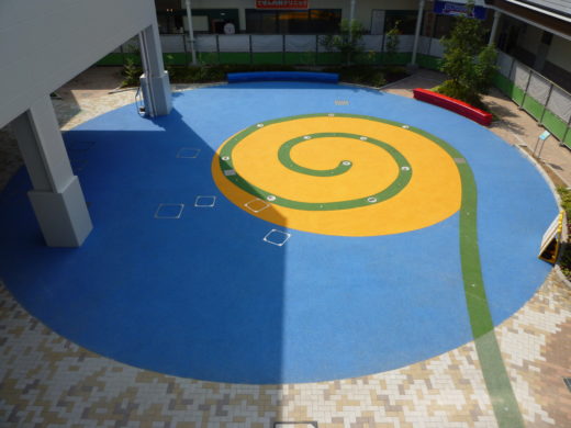 また、現場施工型となっているため、複合型遊具等複雑な地形にも隙間なく施工可能です。