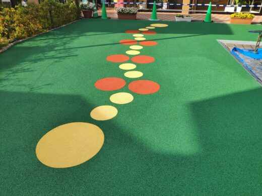 - 現場施工のため遊具下などにも隙間なく施工することができる