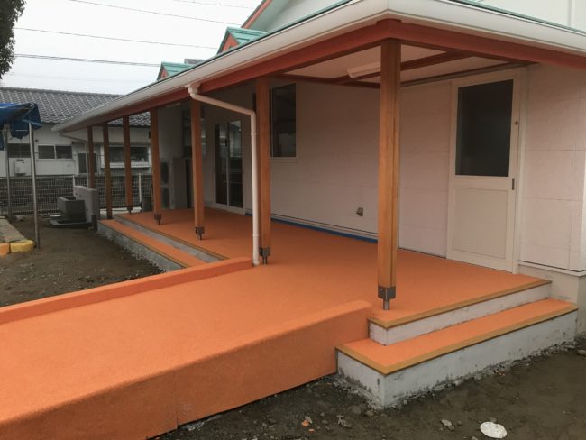 美作市の保育施設にて、ソフトグラウンド、ソフトステップ、及びスロープのたてり部分の保護の施工をさせていただきました。 クライアント: 美作市保育施設 施工製品: ソフトグラウンド(標準タイプ) テラス部分での安全性はもち…