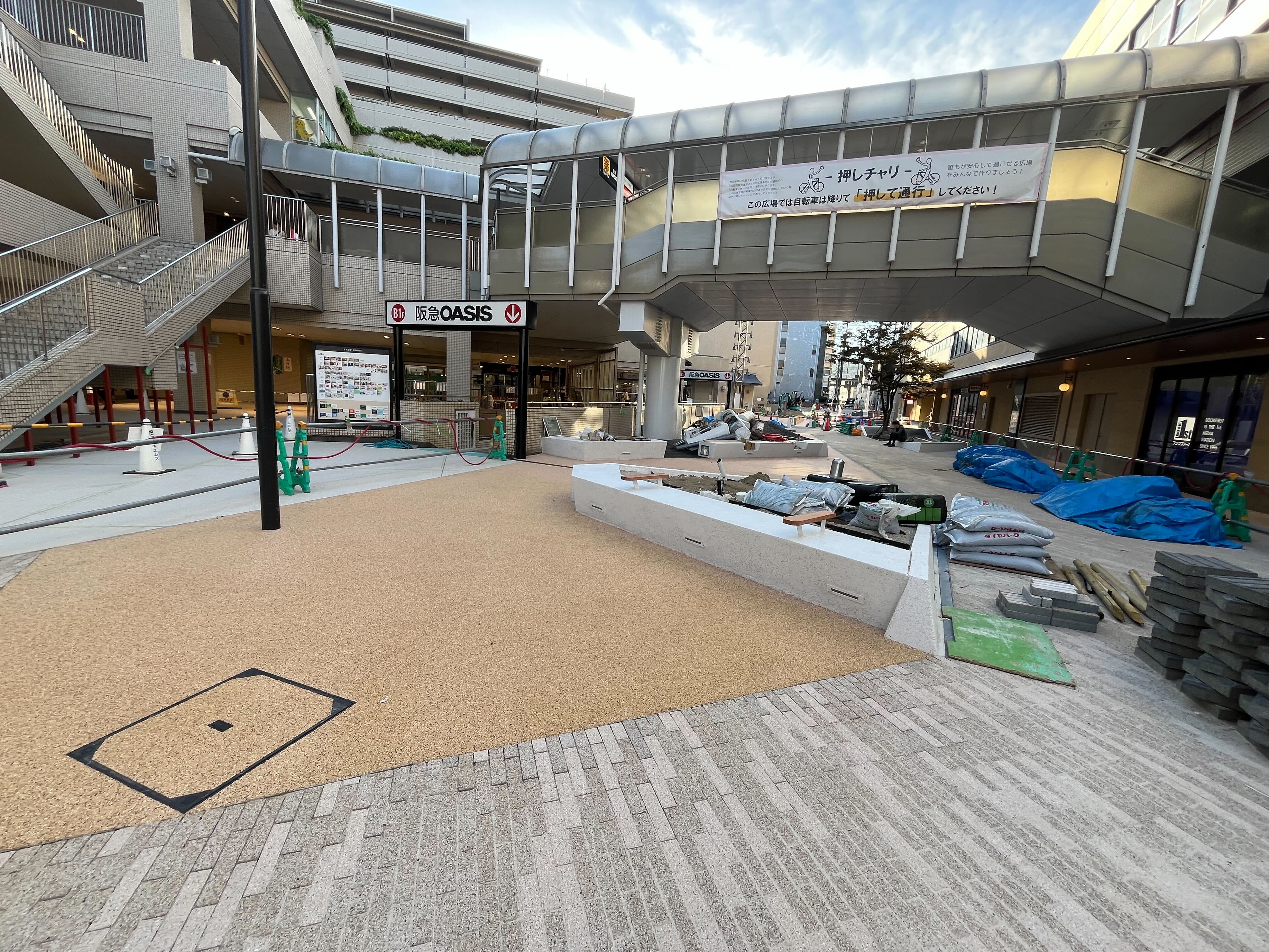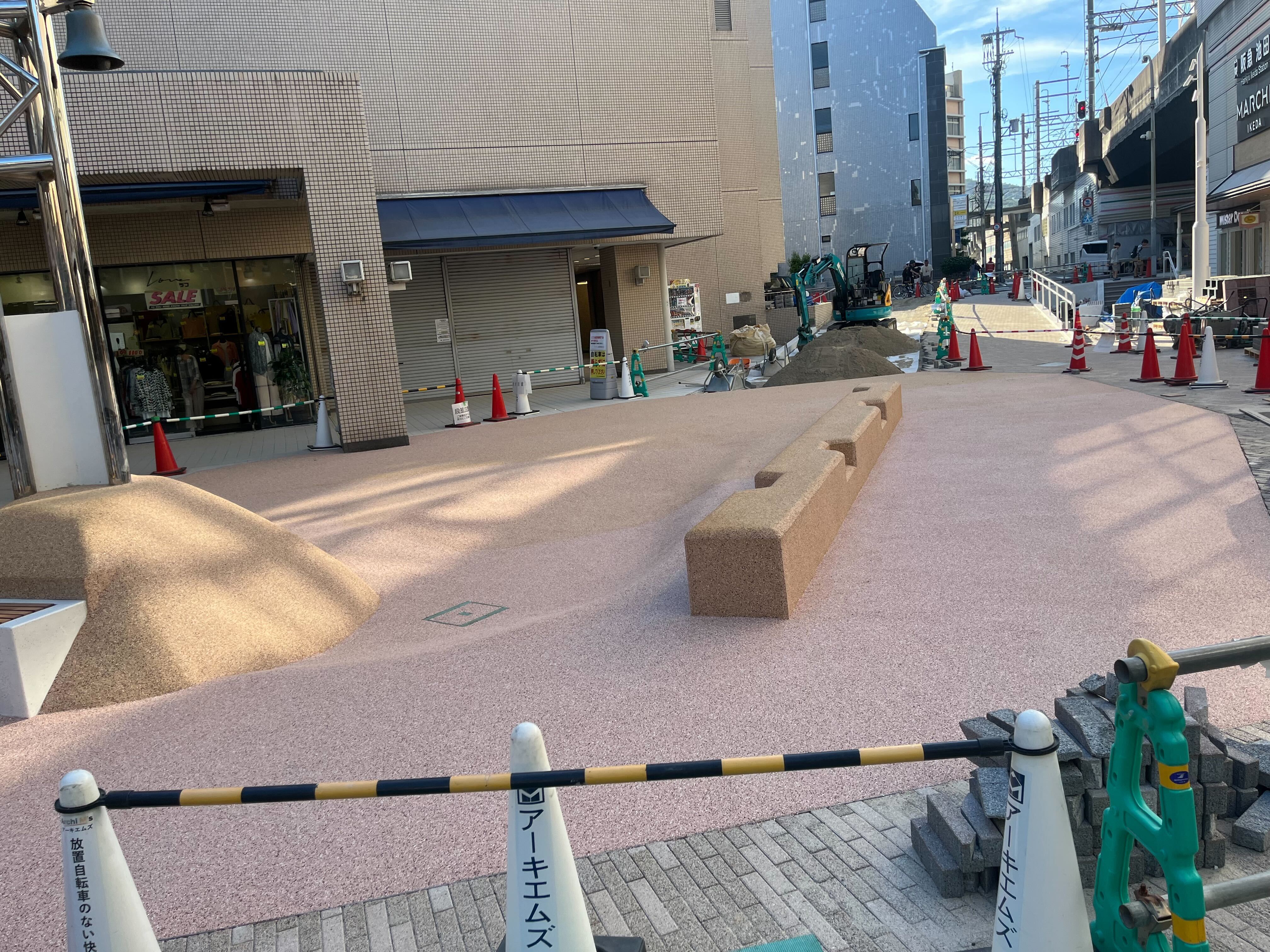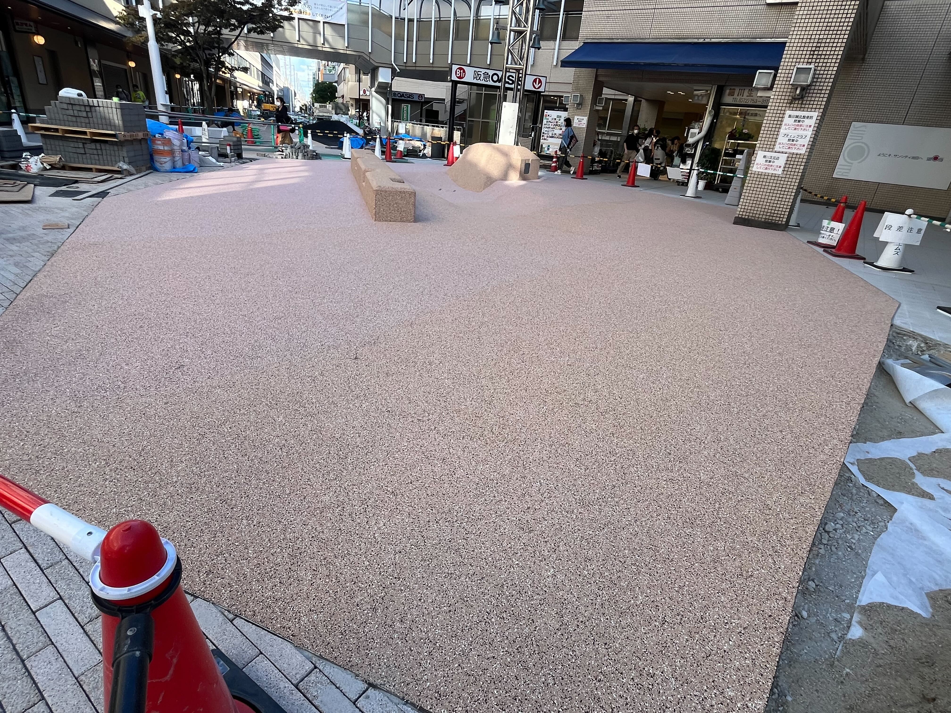 おしゃれなゴムチップ製のベンチや、意匠を凝らした時計台など、見慣れた景色がおしゃれな景色へと変わりました!