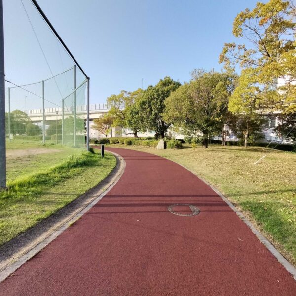 広い広い公園をぐるりと一回り、きっとランニングする方はとっても気持ちいことと思います!施工時には桜が咲き誇っていて、本当にきれいな公園でした。