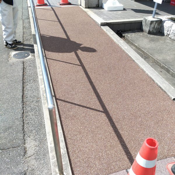 赤磐市の市役所にて、入口のスロープ部分を施工させていただきました。