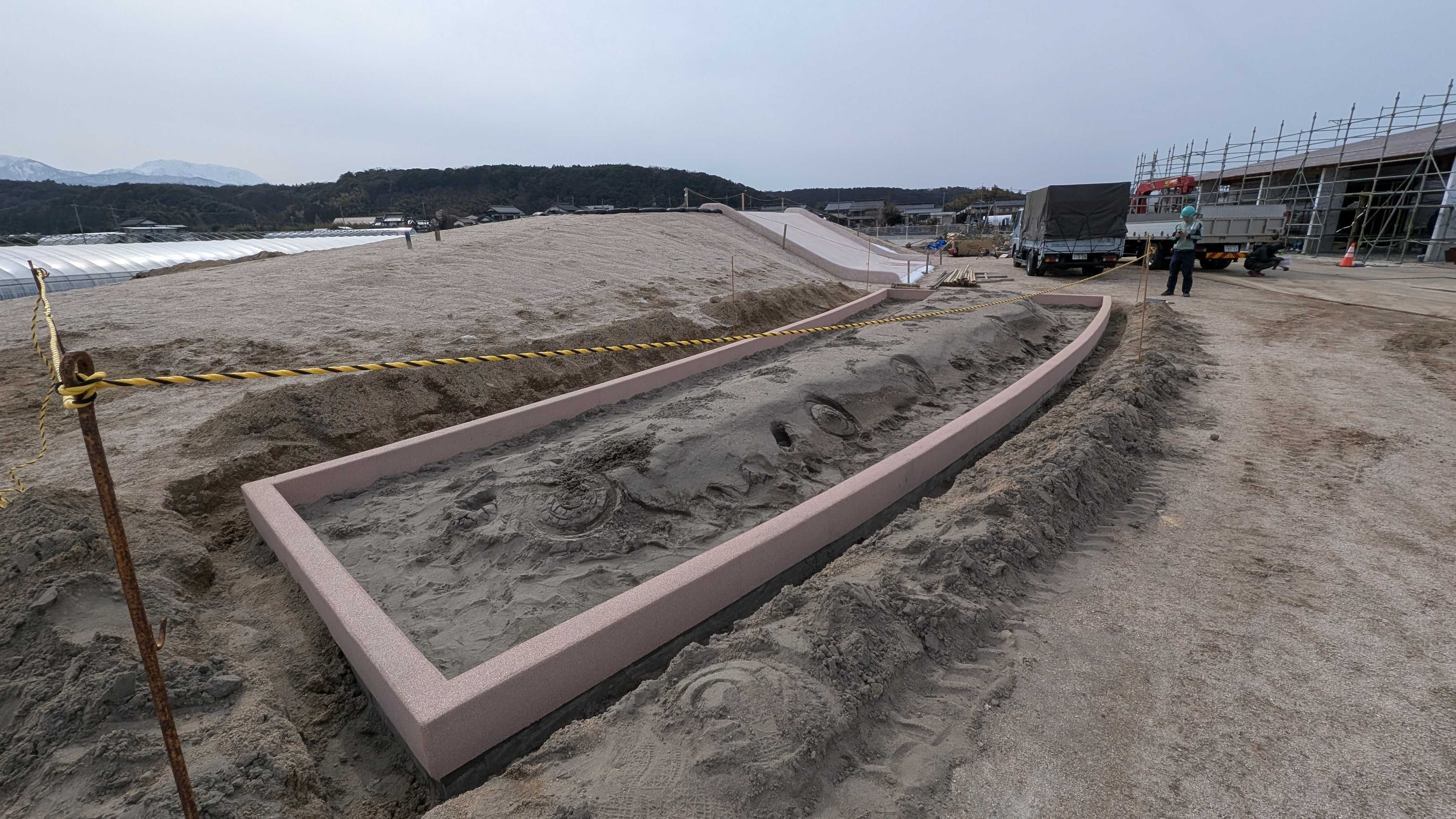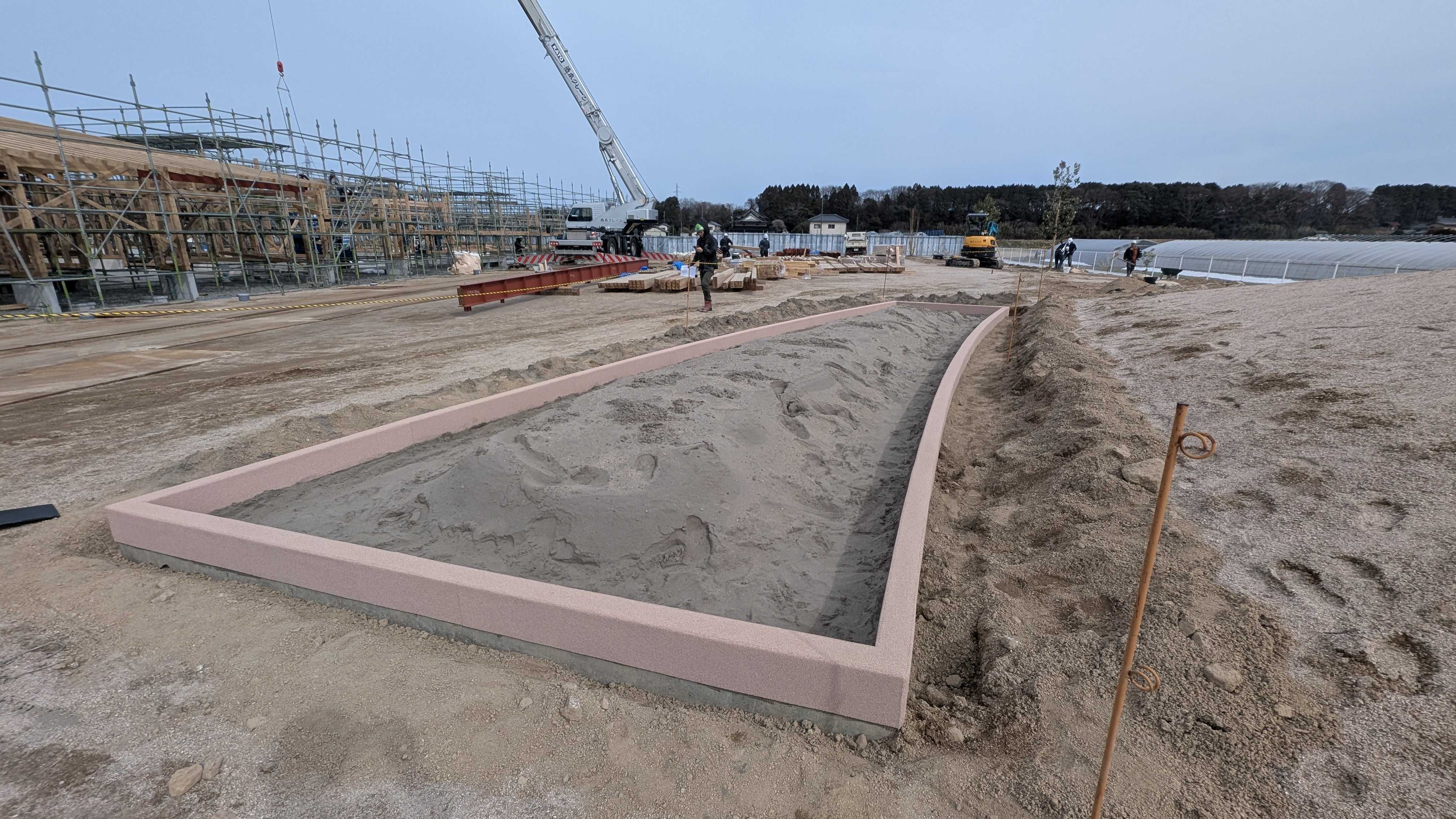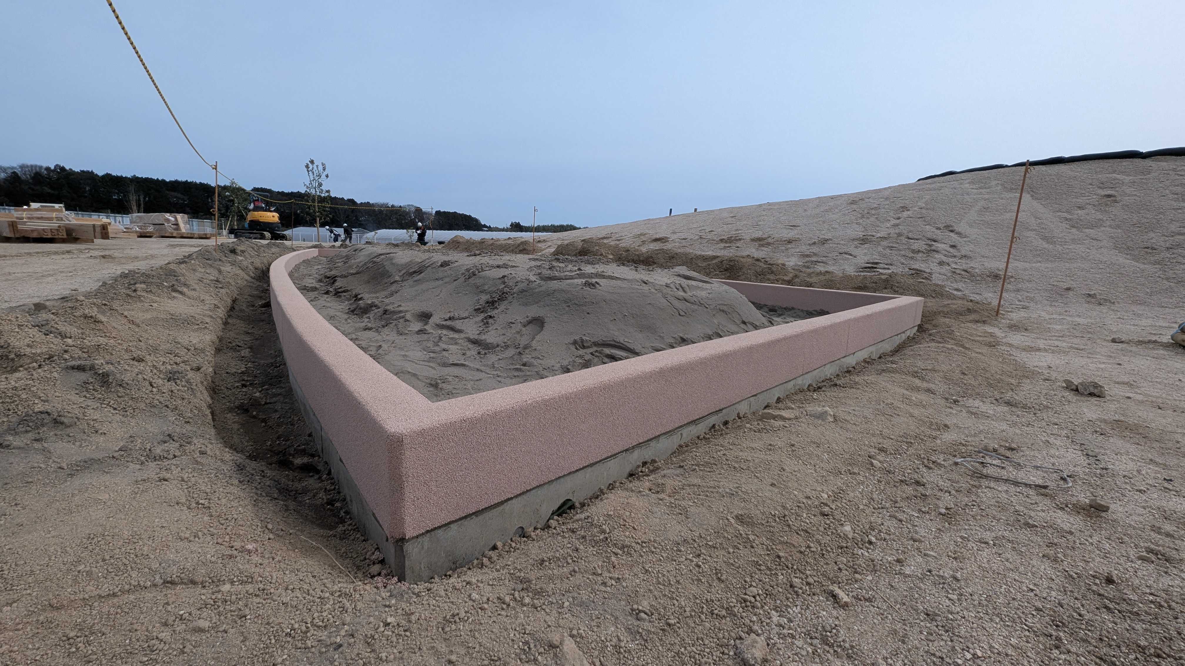 鳥取県東伯郡の保育施設さまにて、砂場枠のゴムチップ舗装をさせて頂きました。